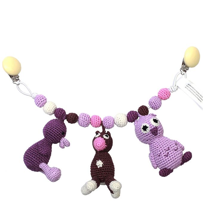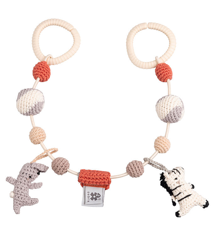 - Underholdning: De hængende figurer, perler og ringe på kæden holder barnet beskæftiget og underholdt, hvilket kan være særligt nyttigt under gåture eller når forældrene handler.